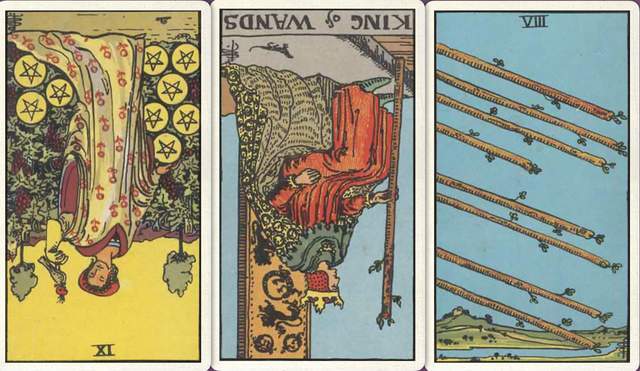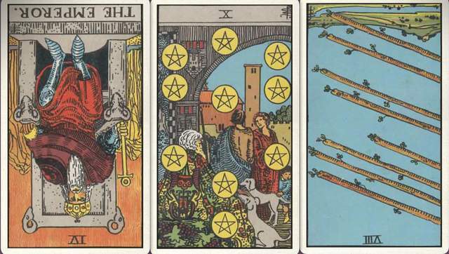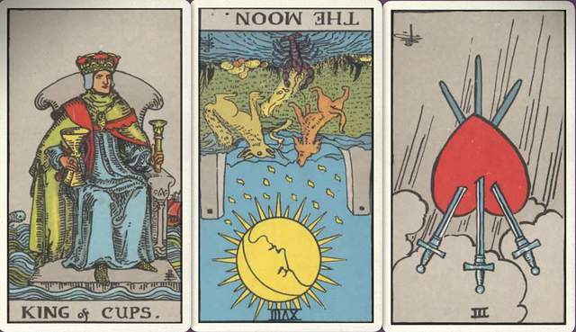 牌:圣杯皇帝+ 月亮- 宝剑三-