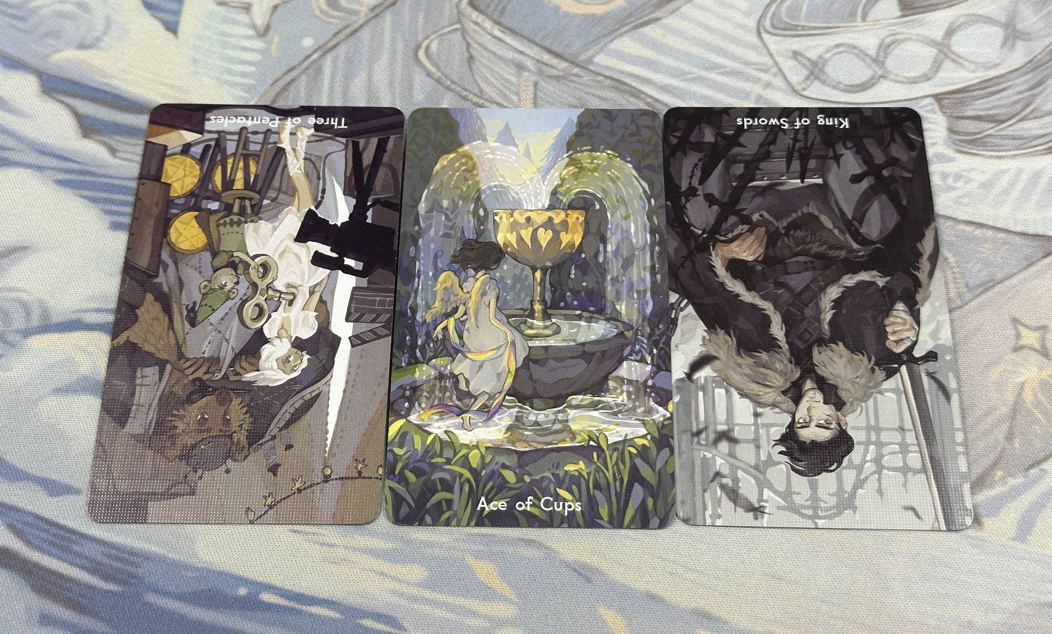 牌:星币三- 圣杯ace+ 宝剑皇帝-