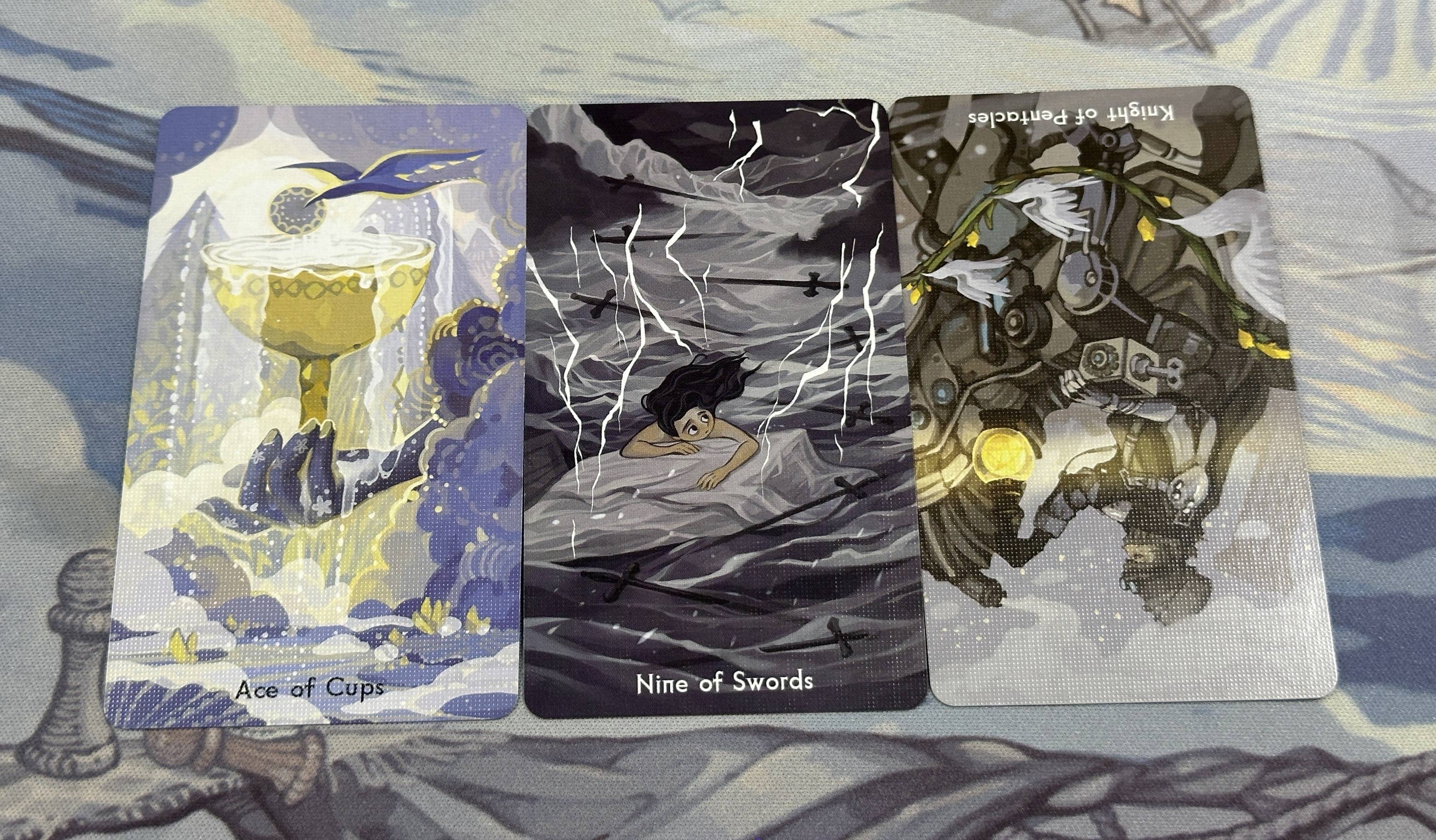 牌:圣杯ace+ 宝剑九+ 星币骑士-
