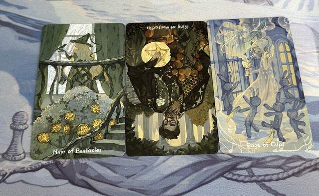 牌:星币九+ 星币皇帝- 圣杯侍从-