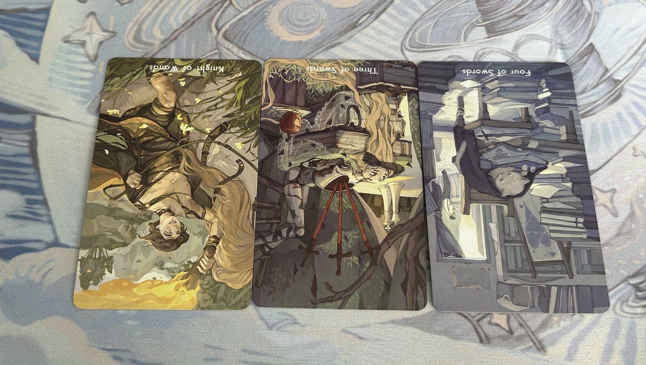 牌:权杖骑士- 宝剑三- 宝剑四-