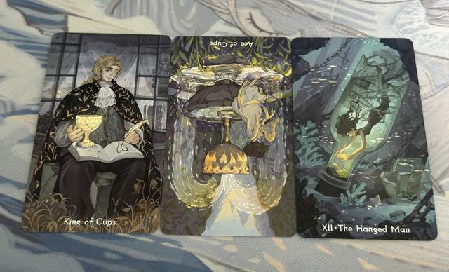 牌:圣杯皇帝+ 圣杯ace- 倒吊人+