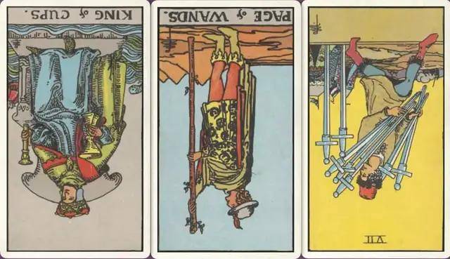 牌:圣杯皇帝- 权杖侍从- 宝剑七-