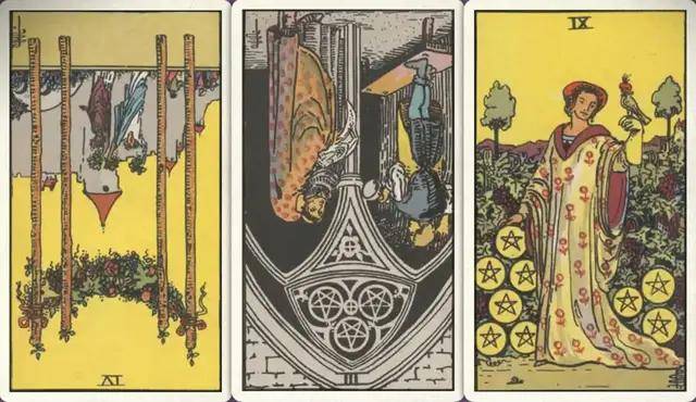 牌:权杖四- 星币三- 星币九+