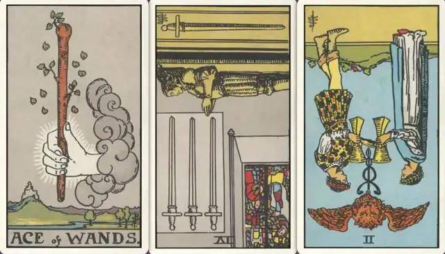 牌:权杖ace+ 宝剑三- 圣杯二-